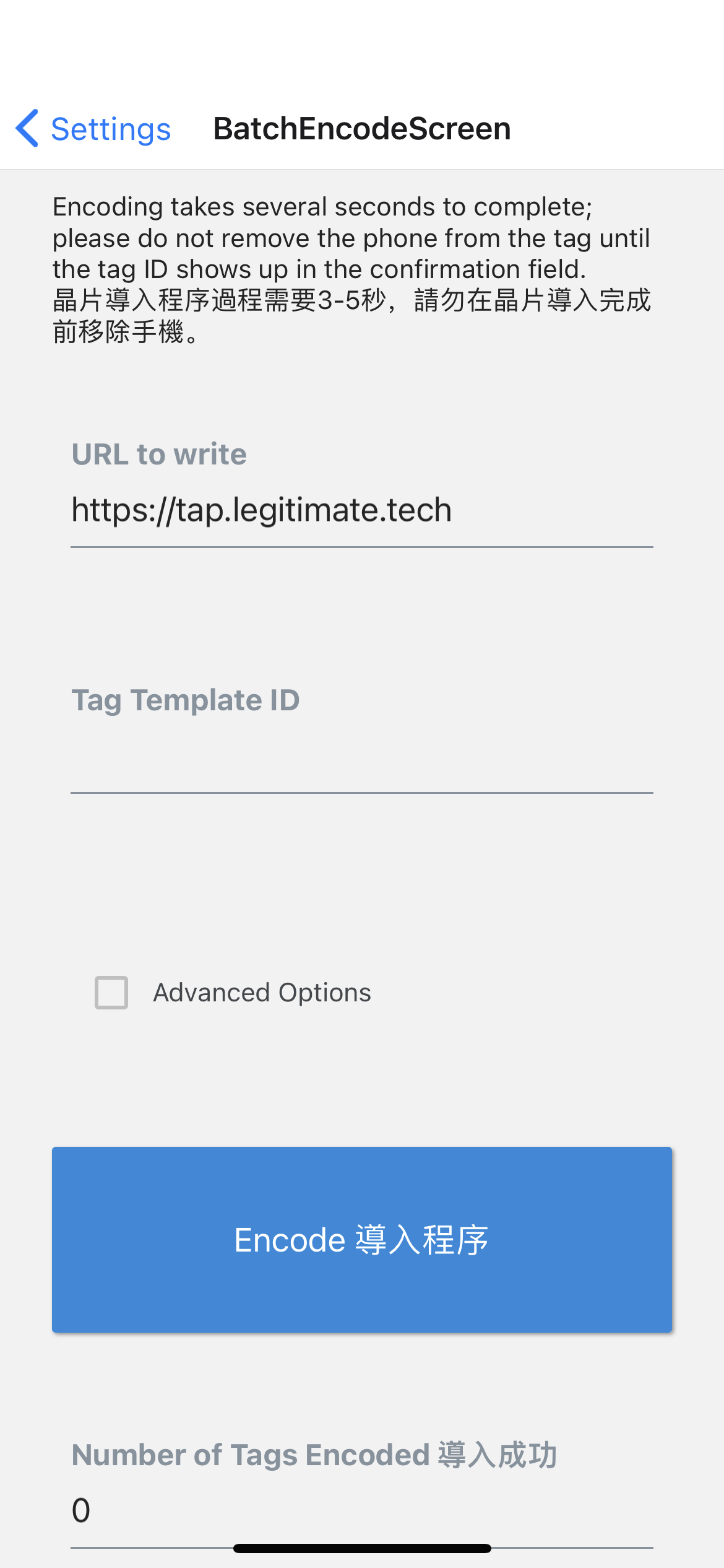 3. If there are tags that repeatedly do not pass verification after multiple encoding attempts, please remember the **Tag Template ID** and notify Legitimate afterwards to exclude that tag from the our system.