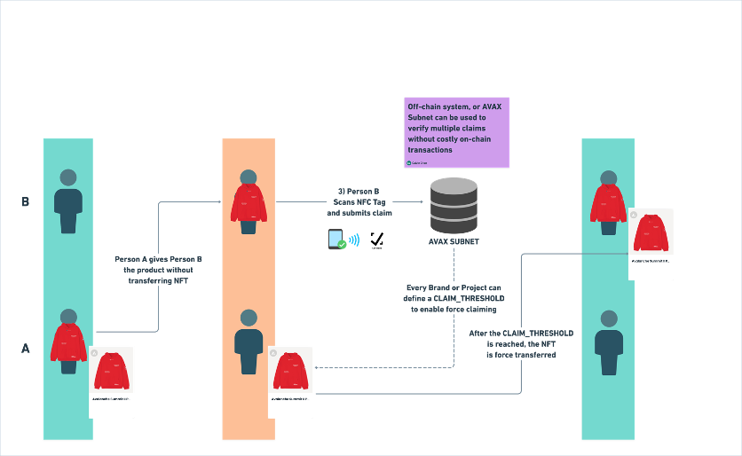 This role can also be granted to a smart contract that operates a decentralized consensus mechanism in conjunction with the ability to verify the NFC digital signatures. As such, this contract can request that the customer scan the unit a set number of times before force recovery is performed.